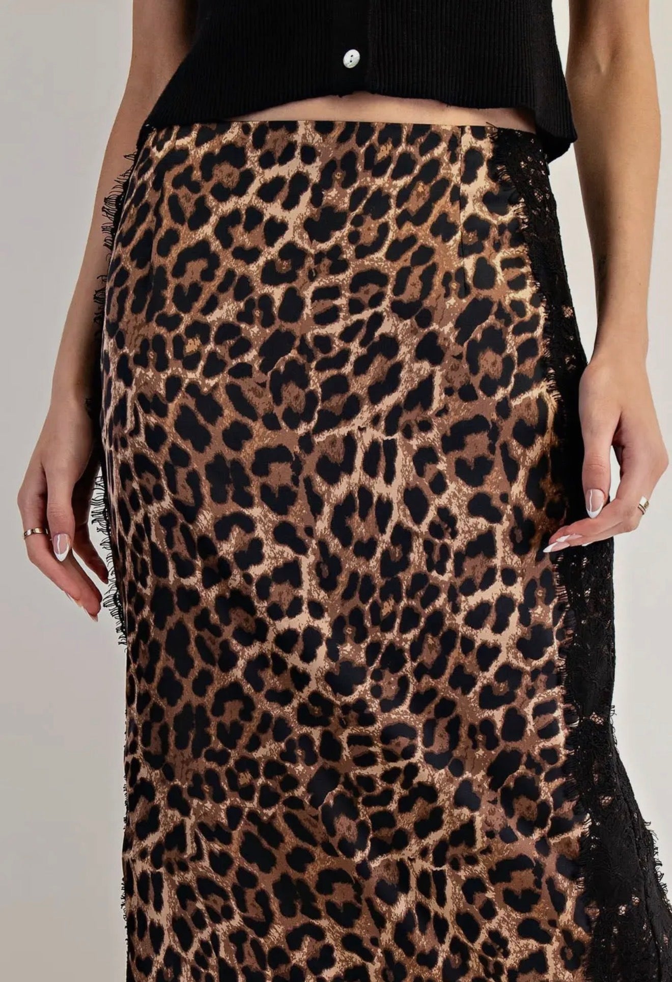 Leopard Lace Trim Midi Skirt